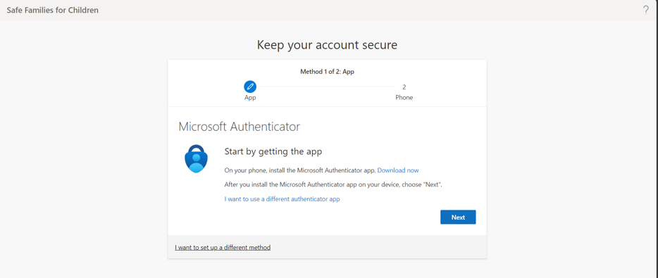 If you already have an authenticator app, eg. Authy, and are confident using it, feel free to opt for this instead and click "...a different method."