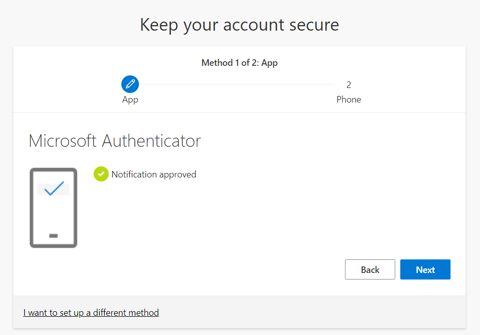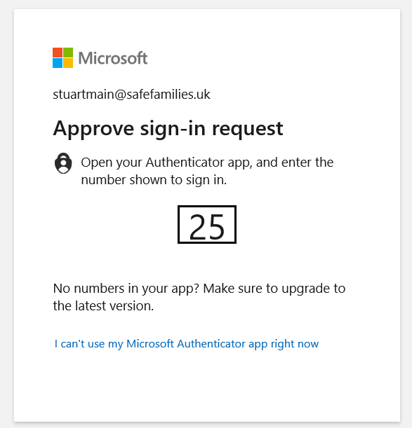 All being well, the Authenticator app will add the Microsoft account and you'll see the following prompt on the laptop screen.
