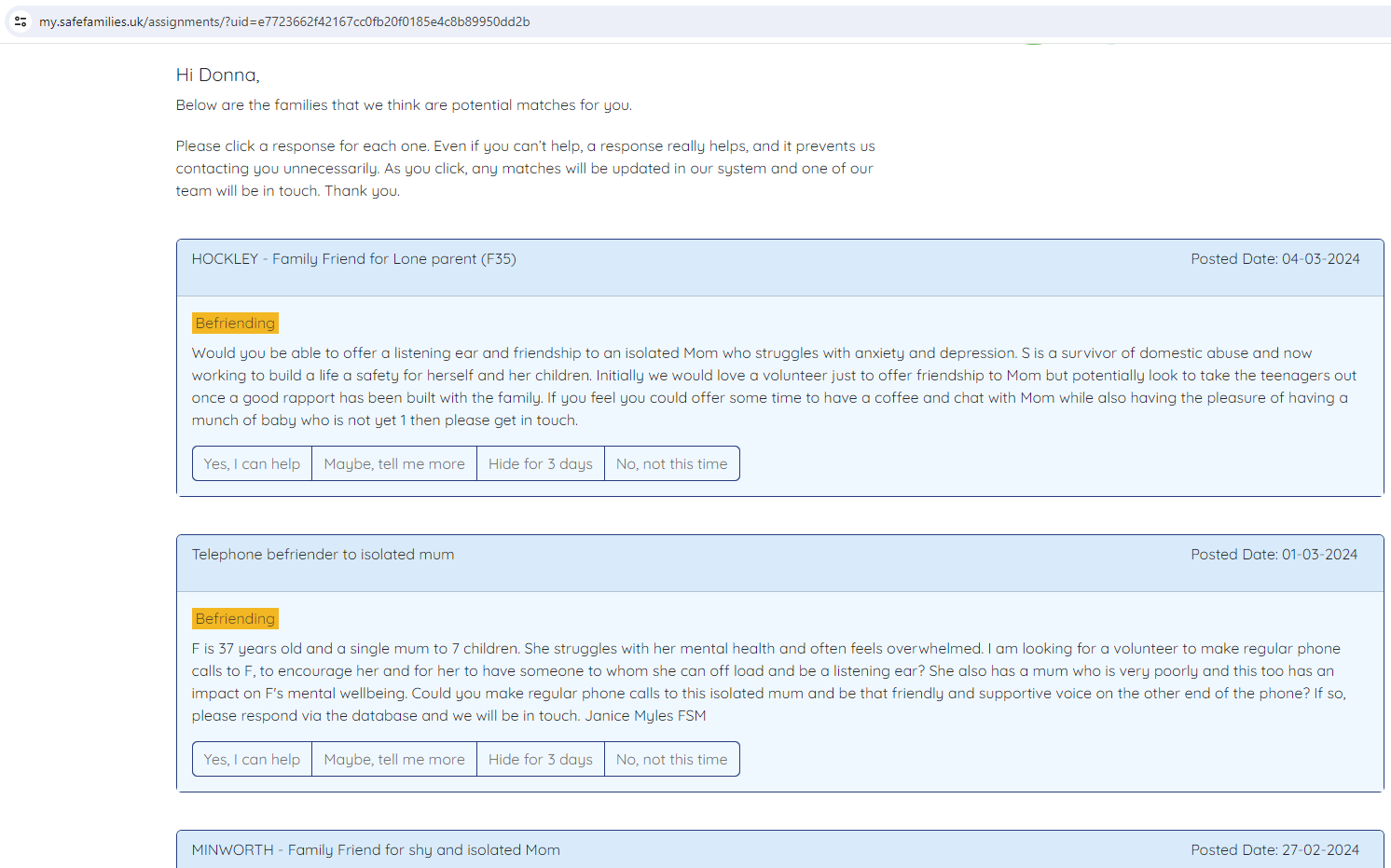 The link is personalised and will show them the latest 10 posts that were sent to them, that they haven't responded to, that haven't been matched already or closed as not needed.