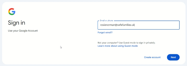 On the webpage that opens, you should see your email address in the email box, you can then click next.
