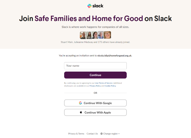 To enable that, Home for Good staff will receive an invite to the 'Safe Families and Home for Good' workspace. These should start to arrive on Wednesday 21st August.