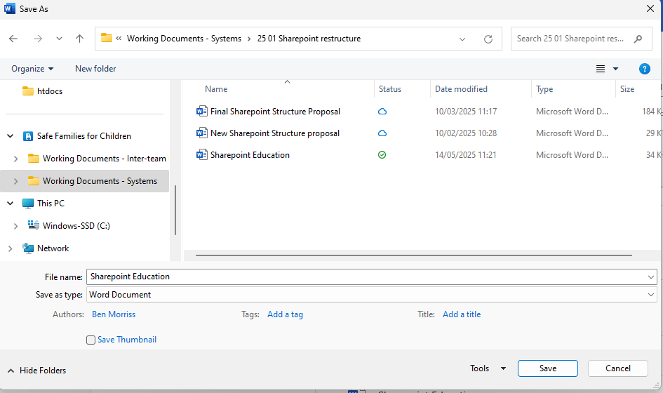As Safe Families and Home for Good we use Microsoft 365 as one of the key systems that looks after everything from emails, calendars and files. As part of the Microsoft suite of tools there are two tools that we can use to store, share and collaboratively work on files. These are OneDrive and SharePoint.