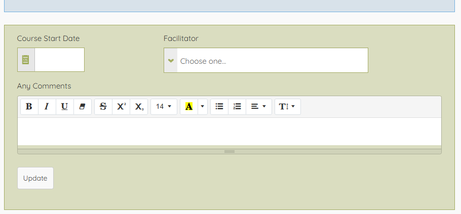 Once a course has been marked as 'offered', any of the Kids Matter facilitators will be able to update the details of what date the course will start and with whom.