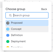 To create a 'full' project board, the project must first have been added to the project portfolio in the 'Proposed' stage. This is the same process for moving projects through the stages on the Portfolio board later but first you myst move it to concept.