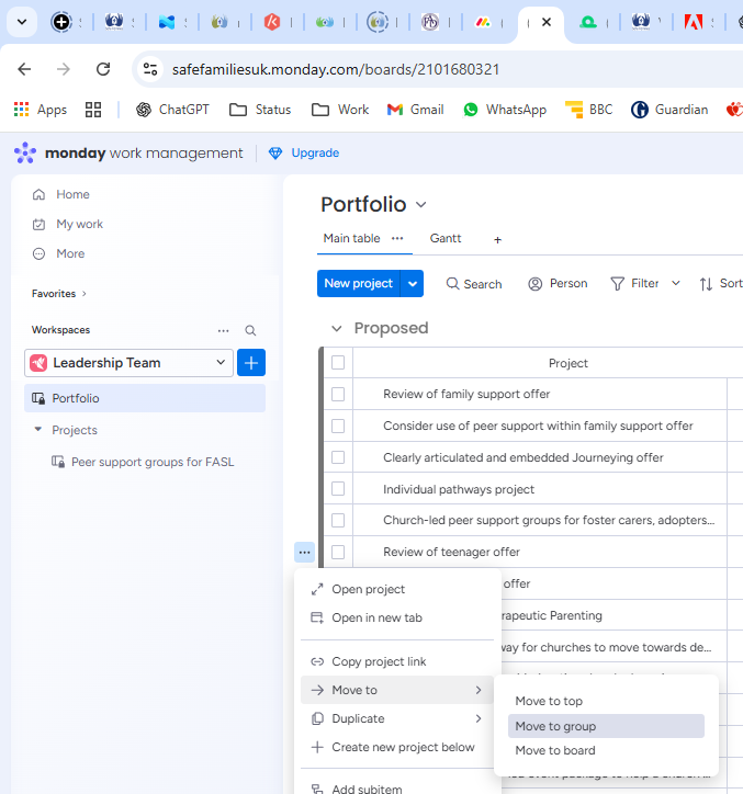 To do this, click the three dots to the left of your project, select MOVE TO... and then MOVE TO GROUP...