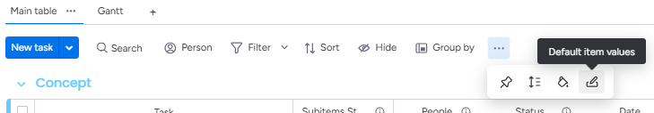 To do this, click the three dots on the board menu and select 'Default Item Values'